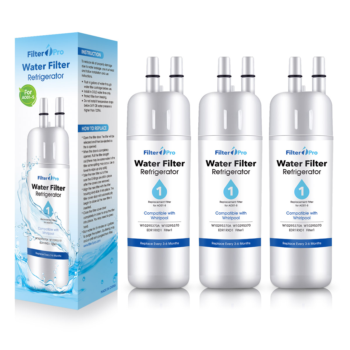 Filter1pro AO01 Replacement Refrigerator Water Filter for EDR1RXD1 W10295370A P8RFWB2L 9081 Filter 1 Whr1rxd1 (1/2/3/4/6 Packs from just $19.99)